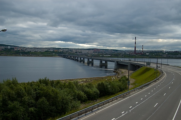 Мост через протоку между Мончеозером и Мончегубой озера Большая Имандра (≈92 м.)- Мончегорск