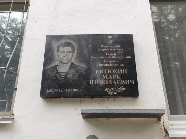 - В 2000 году средняя общеобразовательная школа № 5 в городе Пскове получила имя Героя России Марка Николаевича Евтюхина[14]. В 2018 году на здании была установлена мемориальная доска[15].
