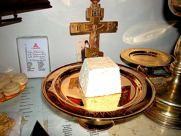 Евхаристический Агнец — четырёхугольная частица, вырезаемая из просфоры во время проскомидии и прелагаемая затем, во время освящения Святых Даров, в тело Христово. Вырезается с особыми молитвами, причём для него выбирается лучшая из просфор. Для каждой литургии приготовляется один Агнец. Первые свидетельства об использовании на литургии Евхаристического Агнца восходят к VIII веку, хотя его приготовление не является ещё общепринятым литургическим действием. Впервые о нём упоминает Константинопольский патриарх Герман (740 год). В основной части это последование священнодействий сложилось к X—XII векам, а последние добавления были сделаны в XIV—XV веках. Чин приготовления Агнца складывался постепенно и в современном виде окончательно установился только к XIV—XV веку[1].