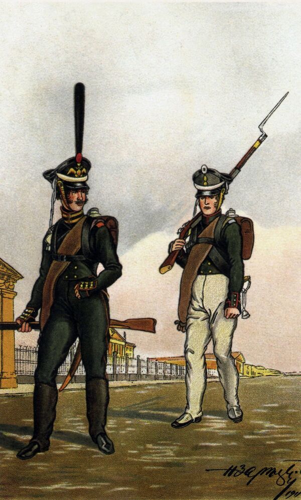 В егерских полках («В тридцатом егерском, а после в сорок пятом») служил полковник Скалозуб, персонаж комедии А. С. Грибоедова «Горе от ума».