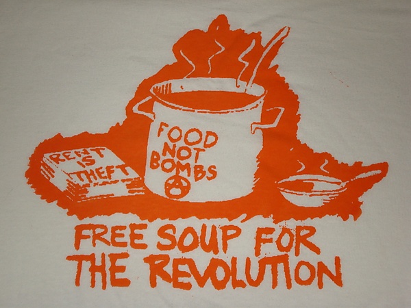 В конце 1980-х вторая ячейка «Еды вместо бомб» сформировалась в Сан-Франциско. Вскоре она наткнулась на сопротивление со стороны полиции и городских мэров Арта Агноса и Фрэнка Джордана («суповые войны»). 15 августа 1980 года было задержано 9 волонтёров. Мэр Агнос вызвал первую конфронтацию, использовав специальные подразделения полиции для разгона активистов «Еды вместо бомб», раздававших еду в парке «Golden Gate». Группа тем не менее проявляла упорство и, несмотря на сотни задержанных, продолжала поставлять еду на улицы. Умелое использование ими скандала в СМИ позволило им заручиться поддержкой общества. Консервативный мэр Джордан продолжил дело Агноса, отношения между «Едой вместо бомб» и администрацией оставались напряжёнными. Члены группы постоянно избивались и задерживались полицией. После каждой волны задержаний группа росла. На каждую раздачу стали собираться сотни человек, что затрудняло действия полиции. В 1989 году члены «Еды вместо бомб» начали записывать на видео действия полиции и использовать судебную систему в попытках остановить полицейский беспредел[2].