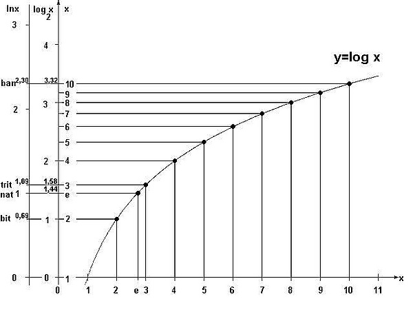 Когда некоторые величины, в том числе и объём данных, представляют собой показательные функции, то, во многих случаях, удобнее пользоваться не самими величинами, а логарифмами этих величин.