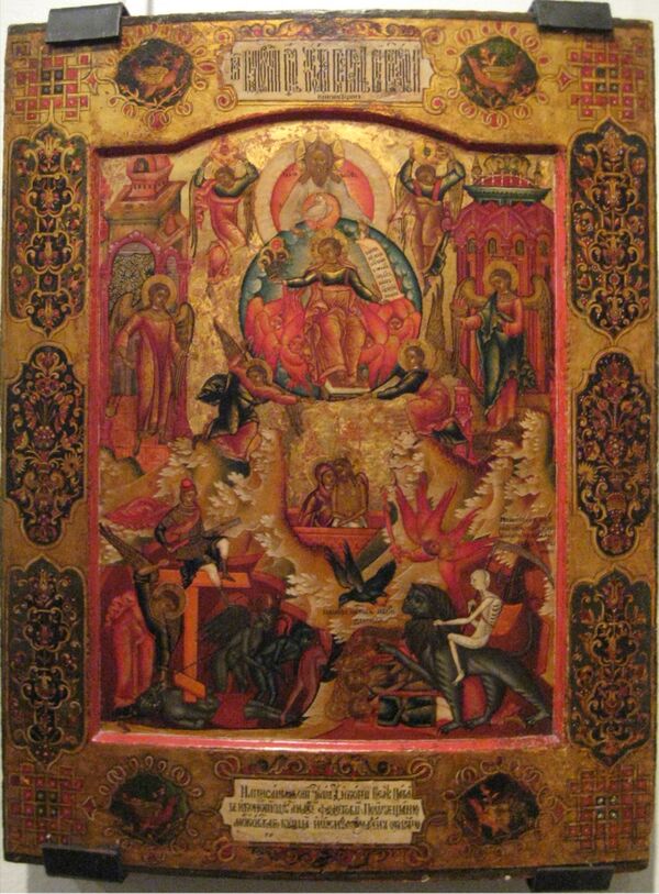 Русский: Единородный Сын и Слово Бога бессмертное, что изволило спасения нашего ради воплотиться от Святой Богородицы и Приснодевы Марии, неизменно вочеловечившееся и распявшееся за нас смертию смерть поправшее – Христос Бог во Святой Троице единосущный и сопрославляемый Отцу и Святому Духу, спаси нас!