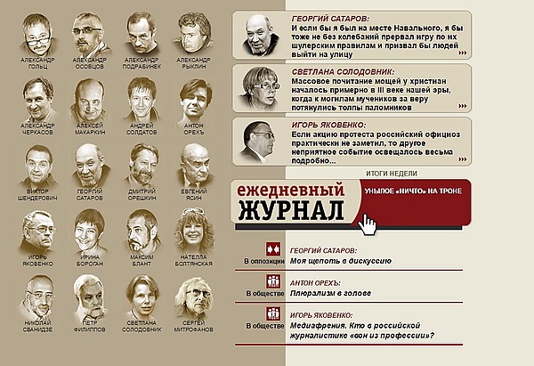 В ноябре 2004 года, после 164-го номера[3], «Еженедельный журнал» прекратил своё существование, однако тогда же в Интернете по этому же адресу стал реализоваться новый проект — «Ежедневный журнал». Его главным редактором до 2005 года был Бергер, затем его сменил Александр Рыклин. Заместитель главного редактора — Александр Гольц, генеральный директор — Ольга Пашкова.