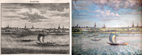 1623 год: путешествие купца Федота Котова. «От Касымова до Мурома 70 вёрст горами, а Окою рекою 150 вёрст. А по дороге городище стоит на луговой стороне, а зовут Елатма, тут посады»[76].