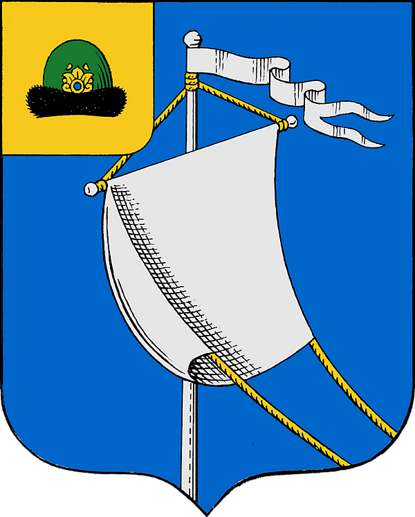 <…> въ голубомъ полѣ распростертый на мачтѣ серебряный парусъ съ золотыми веревками, означающій, что въ семъ городѣ обогащаются славными своими парусными полотнами.