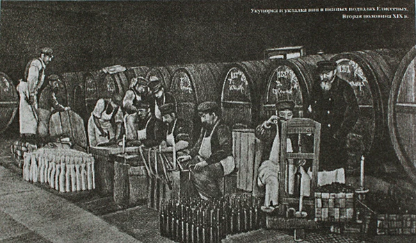 В 1858 году торговый дом приобрёл винтовой пароход «Александр II», что принесло торговому дому значительную выгоду. Елисеевы «на корню» покупали урожай винограда в знаменитых винодельческих регионах Франции и Испании — в Бордо, Опорто, Хересе и на острове Мадейра. Там же виноград проходил первоначальную обработку, Елисеевы имели за границей склады для хранения продукции. После доставки винных полуфабрикатов на кораблях в Санкт-Петербург они выдерживались по специальной технологии в собственных винных подвалах на Васильевском острове до готовности, разливались в бутылки и отправлялись в российские города, а со временем и за границу.