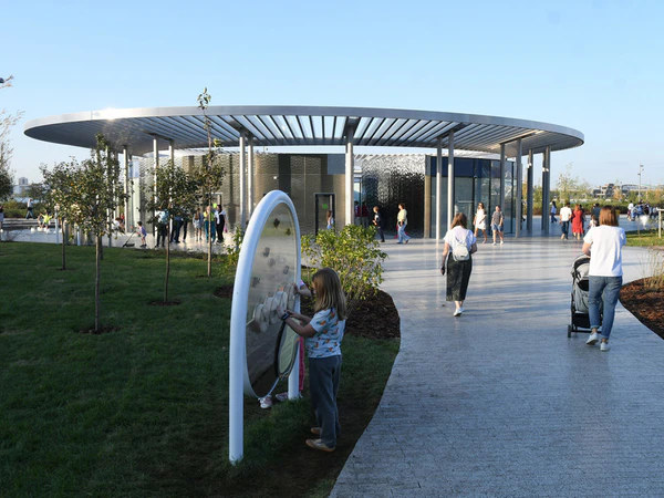 Кроме того, парк оборудован широкой сетью пешеходных дорожек, уютными лавочками, фонтаном, многофункциональным павильоном с детским книжным магазином и кафе, а также зоной для культурных мероприятий, способной вместить до 8 тысяч человек[12].