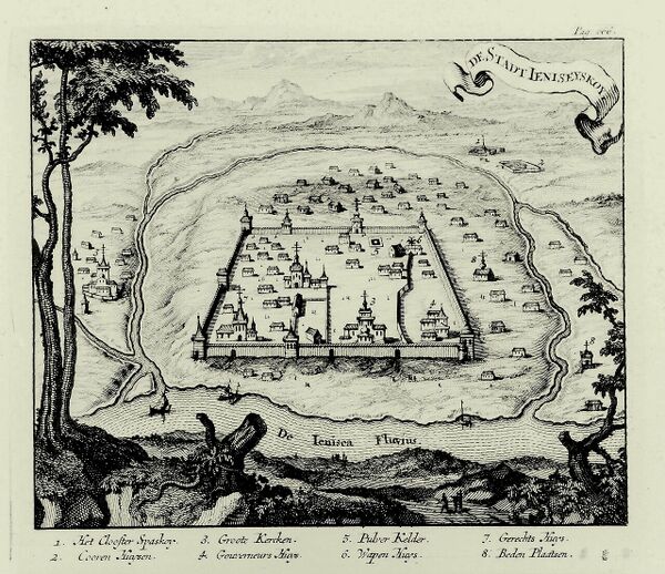 Енисейский острог (сначала Тунгусский) был построен летом 1619 года отрядом тобольских казаков во главе с сыном боярским Петром Албычевым и стрелецким сотником Черкасом Рукиным[10]. С 1623 года местные воеводы назначались непосредственно из Москвы.