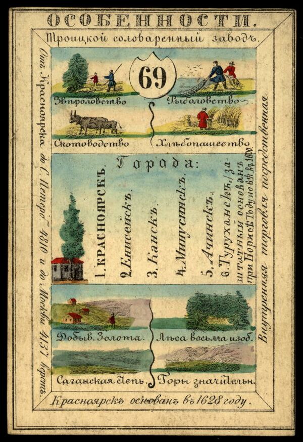 Енисейская губерния очень плодородна; губернатор сообщает нам, что в Миноусинском уезде, в 200 верстах к югу, рожь стоит по 5 копеек за пуд и что сейчас продается урожай 1889 года. Только культивируется. Если бы вниз по течению были пути сообщения, эта страна была бы житницей Сибири. Пока здесь нет хлеба на продажу, в 1000 верстах на запад голод и голод, и голодающие крестьяне вынуждены эмигрировать.Шарль Ваперо, Из Пекина в Париж: Корея, Амур и Сибирь, XXII. Из Красноярска в Томск.