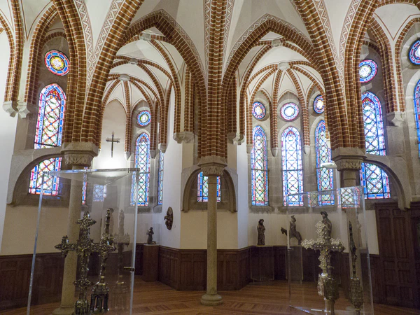 Функционирует с 1963 года. Музейные экспозиции расположены на трёх этажах дворца. В основном показаны экспонаты, относящаяся к паломничеству и религиозному искусству. В зале цокольного этажа демонстрируются эпиграфическая и нумизматическая коллекции периодов Римской империи и Средневековья. На первом этаже показаны экспонаты об истории епархии, резные распятия и алтарь XV—XVI веков, кадильницы, чаши и т. д. Экспозиция второго этажа посвящена архитекторам, построившим дворец: Антонио Гауди, Рикардо Герета, дизайнер Хуан Мойя, художник Энрике Марин Игеро, скульптор Эрнандо де Вильодас, керамисты Даниэль Зулоага и Хименес де Джамуза. Третий этаж используется для временных выставок[7].