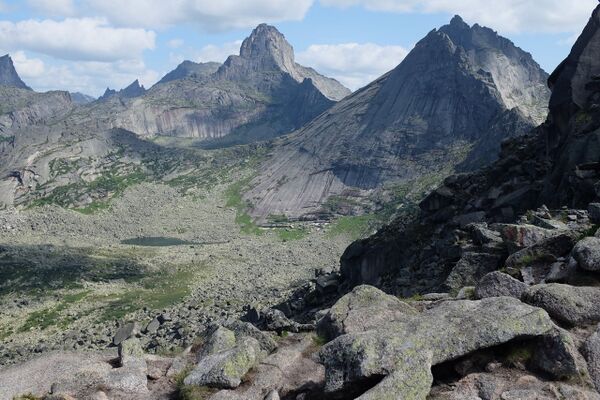 Представляет собой массив разнонаправленных грив, отрогов, в значительной степени обработанных ледником. Горный рельеф в центральной части Ергаков на периферии сменяется гольцовым с отдельно расположенными горами и отрогами более плавных очертаний с пенепленом на вершинах. Отдельные горные пики имеют причудливые очертания и собственные имена: Звёздный (наивысшая вершина Ергаков), Зуб Дракона, Птица, Парабола, Молодёжный, Зеркальный и др. Неповторимость Ергакам придают множество озёр, как правило карстовых, ледникового происхождения. Наиболее известны: Буйбинские озёра (Радужное, Каровое, Светлое), Мраморное (Тушканчик), Золотарное, Горных Духов. Наиболее крупные озёра — Большое Буйбинское, Большое Безрыбное и Светлое.
