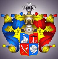 Щит разделён на четыре части, из коих, в первой части, в голубом поле, изображение морского серебряного судна с распущенными парусами. Во второй части, в красном поле, серебряный якорь, имеющий на поверхности анкершток из чёрного дуба (польский герб Котвица) В третьей части, в красном поле, положены накрест серебряный с золотой рукояткой меч и бердыш. В четвёртой части, в голубом поле, виден свёрнутый канат, означенный серебром.