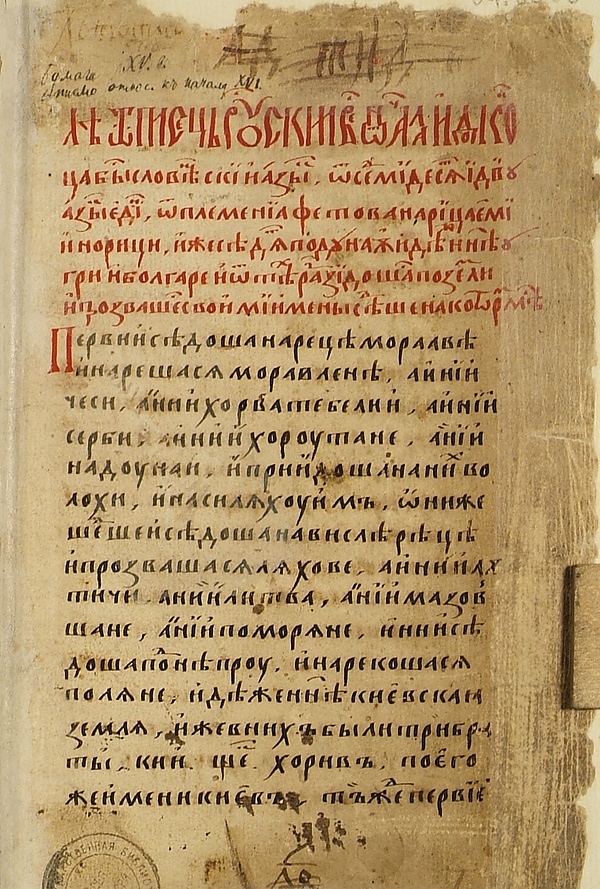 Начальная часть летописи содержит своеобразные версии рассказов о смерти Олега, о Святославе Игоревиче, который сравнивается с Александром Македонским, известие о надписи на чаше, сделанной из черепа Святослава), о волхвах и др.