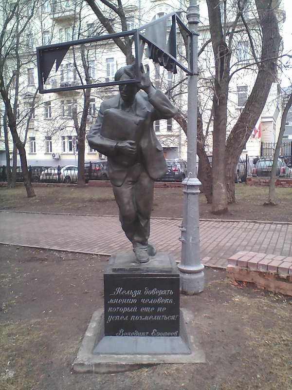 - В Москве в сквере на площади Борьбы находится скульптурная группа, посвящённая героям поэмы «Москва — Петушки».