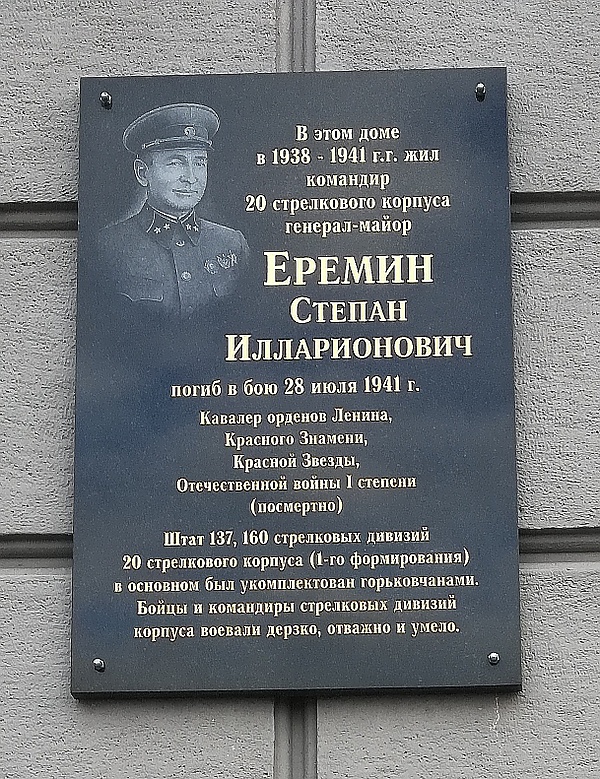 22 июля 1941 года в бою северо-восточнее Пропойска генерал-майор Степан Илларионович Ерёмин был ранен и 28 июля при переправе через реку Сож погиб, столкнувшись с группой немецких солдат. Был похоронен местными жителями на месте боя. Могила была утрачена во время боёв в этом районе в течение 1941 и 1944 годов.