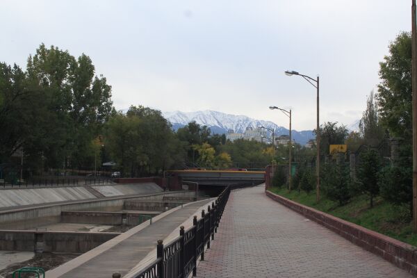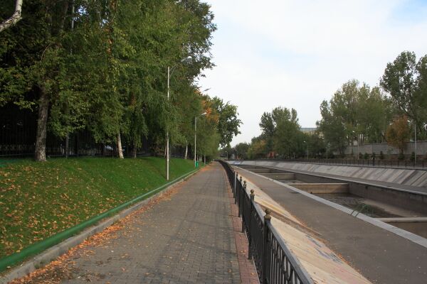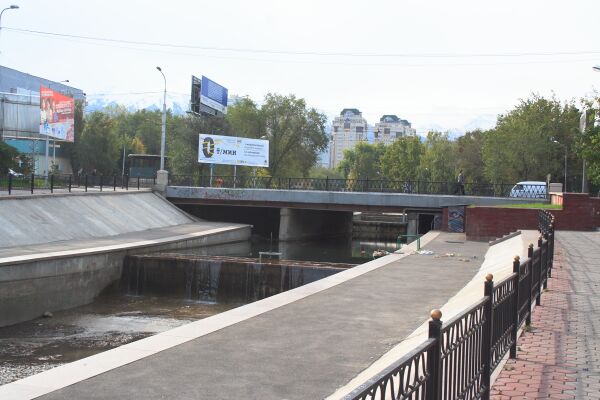 В Жетысуйском районе города между улицами Павлодарская и Северное кольцо русло почти полностью скрыто. Вновь выходит на поверхность в районе посёлка Первомайка, ниже которого разбивается на рукава и каналы, которые разбираются на орошение и теряются в коллекторах.