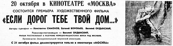 Этот фильм трудно судить по законам художественного и документального кино, потому что, складывая его из хроникальных кадров, лепя из них образы, по силе равные художественным, режиссёр В. Ордынский, писатели Е. Воробьёв и К. Симонов не были ограничены ничем, кроме одного — закона памяти. Памяти о самой тяжкой первой зиме войны, которой они по-солдатски остались верны[5].