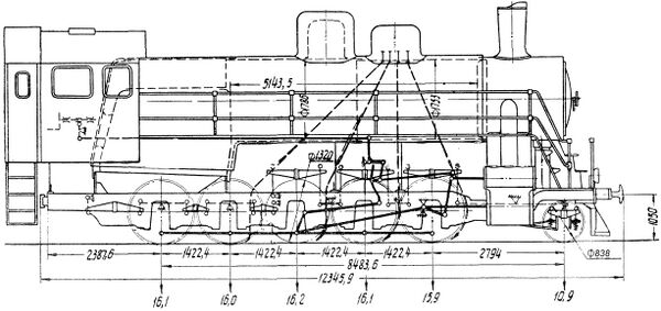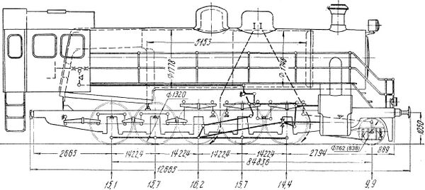 | Нагрузка от движущих осей на рельсы | 14,4—18,4 т |