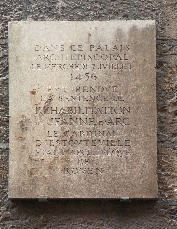 После окончания войны в Нормандии в 1452 году Карл VII велел собрать все документы, относящиеся к процессу над Жанной, и предпринять расследование его законности. Следствие изучило документы процесса, опросило оставшихся в живых свидетелей и единодушно пришло к выводу о том, что в ходе процесса над Жанной допускались грубейшие нарушения закона. В 1455 году папа Каликст III повелел провести новый процесс и назначил трёх своих представителей для наблюдения над ним, в том числе архиепископа Реймса Жана Жувенеля дез Юрсена в качестве председателя[18].