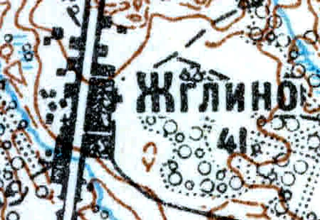 ЖГЛИНО — деревня, число жителей по X-ой ревизии 1857 года: 79 м. п., 81 ж. п.[8]