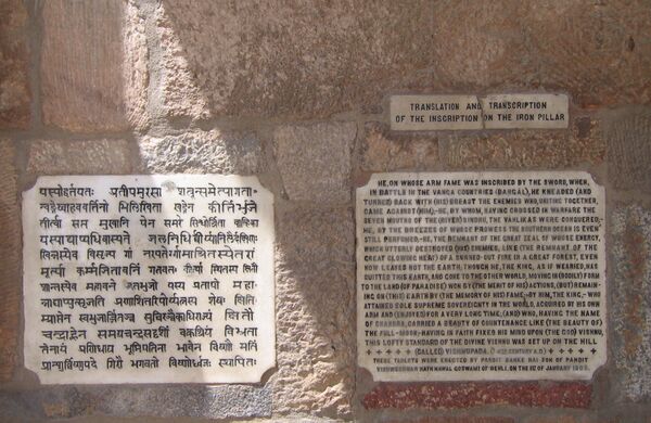 Древняя Индия добилась, очевидно, больших успехов в обработке железа. Близ Дели высится огромная железная колонна, ставящая в тупик современных учёных, которые не могут определить способ её изготовления, предохранивший железо от окисления и других атмосферных явлений.