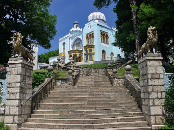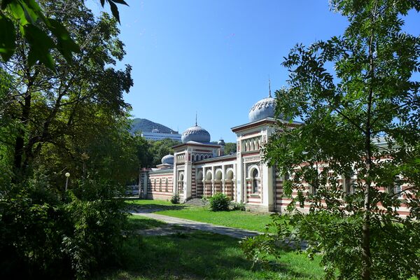 Это оригинальное здание построено в 1893 году по проекту архитектора П. Ю. Сюзора горным инженером А. В. Конради в неомавританском стиле близ железнодорожного вокзала[99]. По красоте, отделке, гидропатическим приспособлениям оно не уступало лучшим ванным зданиям европейских курортов конца XIX века.