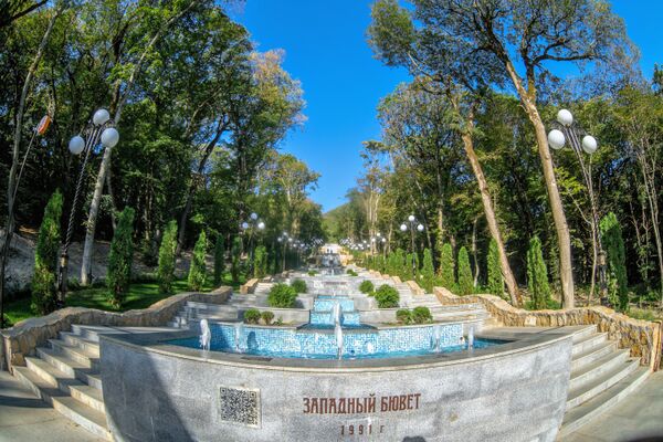 - Бювет Западный (источник № 64) был открыт в 1991 году. С лестницы, ведущей к бювету, видны Свято-Ольгинский храм и гора Бык.