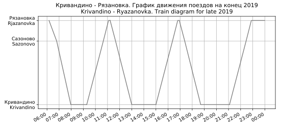 На линии работает только один маршрут пригородного поезда (рельсового автобуса РА1) — Кривандино — Рязановка. Частота движения — три пары в сутки[1], со всеми остановками.