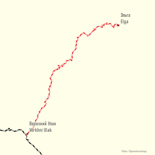 Дорога длиной 360 км[4] берёт начало на БАМе, от станции Улак Дальневосточной железной дороги.