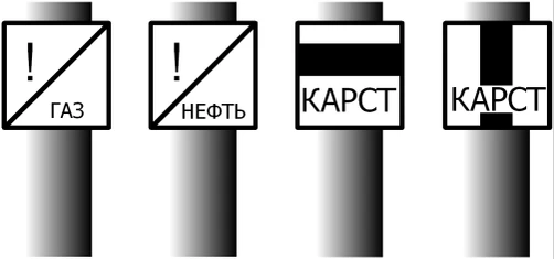 - Постоянные сигнальные знаки «Нефть» и «Газ» указывают на необходимость следования с повышенной бдительностью к месту пересечения железнодорожных путей с нефтегазопродуктопроводами.