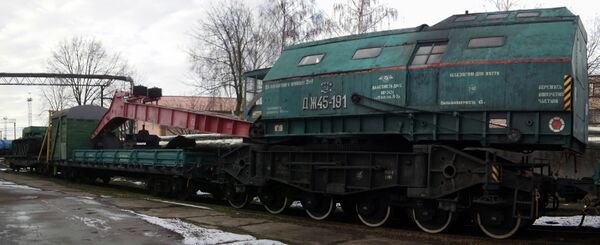 Железнодорожные краны монтируют на специальных железнодорожных платформах. Стрела в транспортном положении укладывается на другую платформу, входящую в комплект оборудования. Платформа крана опирается на колёсные оси в количестве от четырёх до восьми[3].