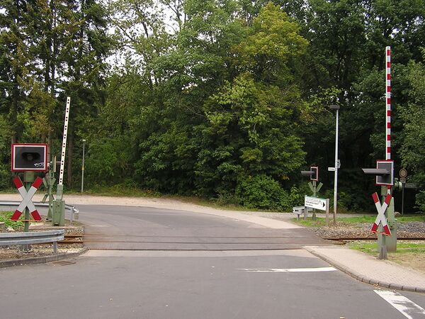 - Первая категория. Переезды имеют шлагбаумы, перекрывающие всю ширину проезжей части (два шлагбаума во всю ширину дороги или четыре шлагбаума в полширины дороги) и светофоры. Во время опускания шлагбаума работает звуковой сигнал. В то время, когда переезд открыт для автомобилей, мигает лунно-белый фонарь светофора. Так как существует опасность «запирания» автомобиля шлагбаумами на переезде, такие переезды либо оборудованы устройствами автоматической детекции, либо находятся под наблюдением дежурного по переезду. Во всей Бельгии имеется всего 17 переездов первой категории.