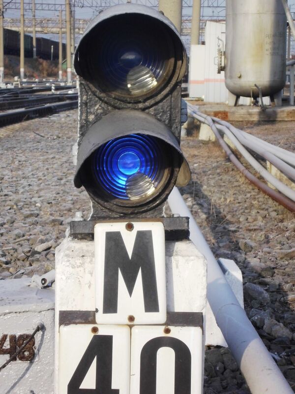 - Лунно-белый — локомотив, осуществляющий роспуск, после его завершения может проследовать через горб горки в подгорочный парк для проведения манёвров на его путях.