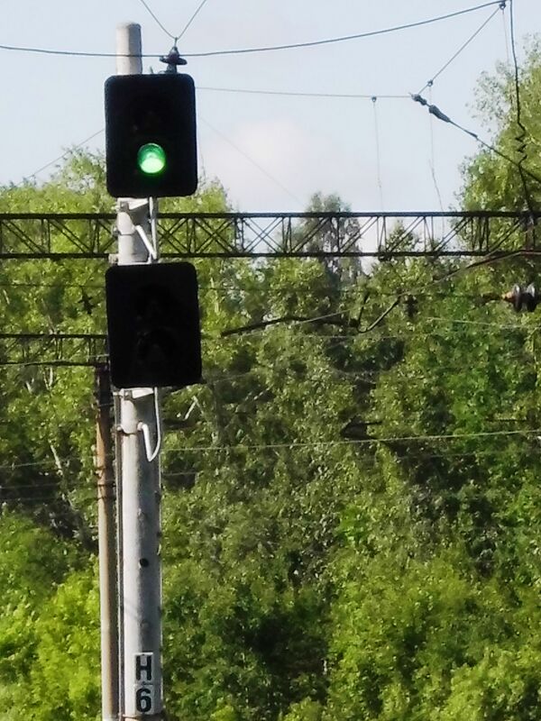 - Один зелёный огонь — «Разрешается движение с установленной скоростью; следующий светофор (маршрутный или выходной) открыт».