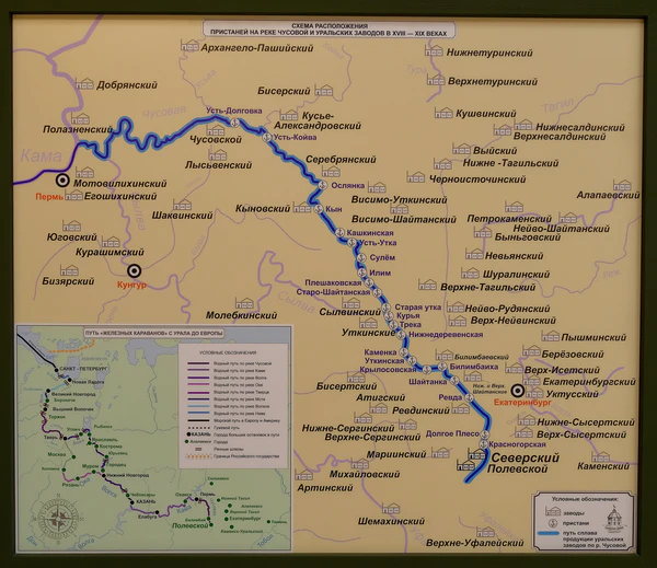 В XVIII–XIX вв. речной транспорт был наиболее распространённым вариантом перевозки продукции уральских металлургических заводов в центральную часть России. Металлы отправляли по Чусовой, Белой, Уфе, Вятке и Каме. Около половины всех уральских заводов отправляли свои металлы по Чусовой[1]. Для этого фарватер реки был расчищен, построены пристани[2].