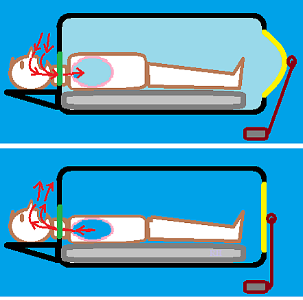 Для осуществления вдоха из цилиндра частично откачивается воздух и создаётся вакуум, что приводит к расширению грудной клетки и брюшной полости. За счёт этого наружный воздух втягивается в лёгкие через нос и рот. Чтобы стимулировать последующий выдох, воздух внутри камеры или слегка сжимается, или его давление выравнивается с давлением снаружи аппарата. Грудная клетка и брюшная полость сокращаются, выталкивая воздух из лёгких, и пациент выдыхает[3][4][12][13].