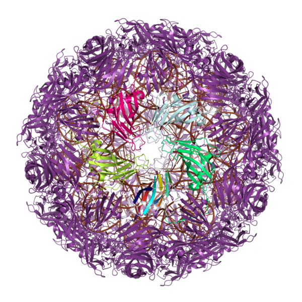 Большое количество вирусов строят свои капсиды из белков, содержащих либо одинарную, либо двойную укладку желейного рулета. Считается, что эта общая капсидная архитектура отражает древние эволюционные отношения, возможно, восходящие к последнему универсальному общему предку (LUCA) клеточной жизни[8][9][10]. Другие вирусные линии используют эволюционно неродственные белки для создания закрытых капсидов, которые, вероятно, независимо эволюционировали, по крайней мере, дважды[9][11] и, возможно, много раз, со связями с белками клеточного происхождения[12].