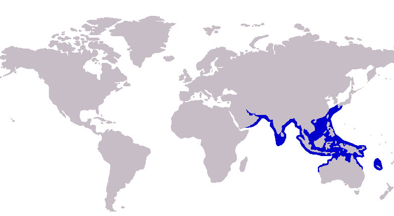 Предпочитает тёплые воды тропических морей, ареал лежит в Тихом и Индийском океанах. Встречается от Персидского залива до Филиппин, от Японии до Арафурского моря и у берегов Австралии.