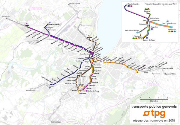 К 1920-м годам Женева стала обладательницей крупнейшей сети в Европе, которая охватывала не только пригороды Женевы, но и соседние французские городки. В 1923-24 длина сети составляла 119,7 км, в том числе 15,6 км по французской территории.