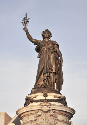 Во время Февральской революции 1848 года, провозгласившей республику, Жером единственный раз в жизни активно вмешался в политику: по некоторым сведениям, вступил в Национальную гвардию и даже был избран капитаном одного из подразделений. Впрочем, о его деятельности во время революции доподлинно ничего не известно[16]. Незадолго до Июньского восстания Жером участвовал в грандиозном конкурсе на картину, прославляющую республику. Это изображение предполагалось вешать в присутственных местах на месте королевского портрета. Всего в конкурсе участвовало более 700 художников, в том числе Диас де ла Пенья, Домье, Коро, Милле и некоторые другие. По отзыву Шанфлёри, выставка, проходившая во Дворце изящных искусств, «была печальной». Основной проблемой стало то, что «художники простодушно поверили, что конкурс освобождал их от всего, даже от таланта»[17]. Эскиз Жерома был традиционным по композиции и помпезным по стилю: он изобразил двухметровую фигуру женщины в лавровом венке, держащую в правой руке меч, а в левой — оливковую ветвь как символ мира. По А. Шестимирову, особенно неестественным кажется розовато-сиреневый восход солнца[16]. Впрочем, жюри сочло, что работы 20 художников, в том числе Жерома, прошли в финал первого тура, за что авторы получили премию по 500 франков каждый. После избрания президентом Луи Наполеона конкурс был аннулирован[13].
