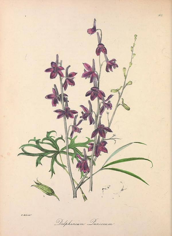 - Delphinium puniceum (англ.). Гербарий К. Линнея. Дата обращения: 27 ноября 2013. Архивировано 2 декабря 2013 года.