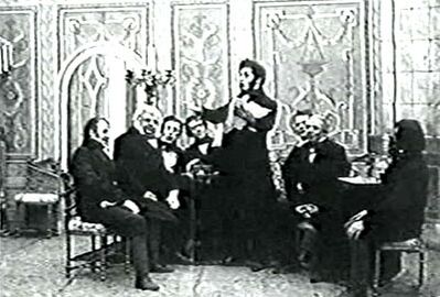- Пушкин читает свои стихи Жуковскому, Карамзину, Гоголю, Грибоедову, Кольцову, Крылову и Вяземскому.