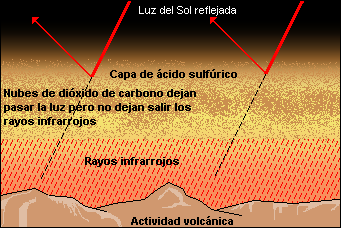 Одним из объяснений этому является существование в облаках микробной формы жизни (экстремофилы архейской структуры) с метаболизмом, полностью отличающимся от всего, что мы знаем на Земле, на основе СО и SO2[28][32]. Как это могло произойти? Гипотеза, которая допустила бы развитие этой жизни, объясняет, что в далёком прошлом температура на Венере была гораздо более низкой. Из моделей эволюции звёзд можно рассчитать, что в первые моменты жизни на Земле Солнце испускало 70 % сегодняшней энергии и температура равновесия на Земле была −41°С. Со временем Солнце становилось более горячим. Таким образом представляется возможным, учитывая наши сегодняшние знания, наличие длительного периода больших океанов, где могла возникнуть жизнь[33][34]. Когда солнечная активность начала увеличиваться, постепенно всё больше тепла стало проникать в атмосферу Венеры, не защищённую магнитным полем. Воздействие выбросов было бы очень сильным, но, возможно, всё происходило достаточно медленно, чтобы позволить древним формам жизни приспособиться.