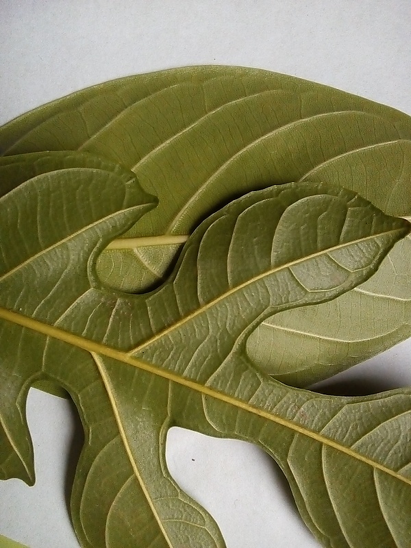 - Перистонервное (от лат. nervus — жила, нерв) или перистожилковатое[9] — лист имеет обычно одну основную жилку и множество более мелких, ответвляющихся от основной и идущих параллельно друг к другу. Этот тип жилкования характерен для большинства двудольных. Пример — яблоня (Malus). Боковые (вторичные) жилки отходят от средней (первичной) жилки под более или менее острым, редко прямым углом. В зависимости от экологических условий средняя жилка, а также черешок бывают развиты в большей или меньшей степени. Усиление средней жилки связано с увеличени ем её роли как главной магистральной линии, а усиление черешка связано с повышением его механических функций. Мощное развитие средней жилки и черешка особенно характерно для вечнозеленых листьев деревьев тропических и субтропических дождевых лесов. Листья этих растений обычно крупные и тяжелые и поэтому снабжены мощным черешком, который имеет более или менее цилиндрическую форму[9]. Перистонервное жилкование может быть совершенно перистым (краевым), когда боковые жилки доходят до края листовой пластинки (дуб, ольха, береза, вяз), и не совершенно перистым (дуговидным), когда боковые жилки не достигают окраины листа, а разветвляются и соединяются между собой петлями (ивы, черемуха, груша)[10].