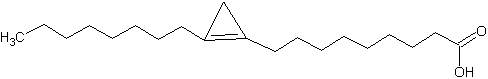 Гомолог этой кислоты был открыт МакФерланом (Mac Farlane) в 1957 году в масле из семян мальвы, поэтому кислоту назвали мальвовой (8,9-метилен-8-гептадеценовой) кислотой.