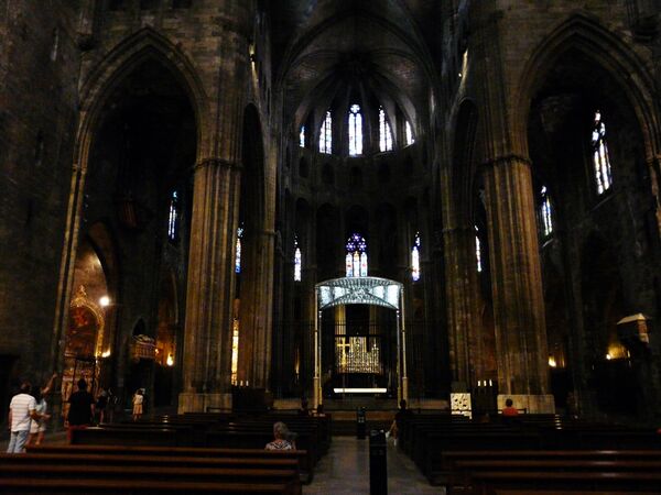 Река Оньяр (кат. Onyar) делит город на две части: на левом берегу расположился современный город, на правом — исторический центр с хорошо сохранившейся средневековой застройкой. Главной достопримечательностью старого города является кафедральный готический собор Жироны (собор Св. Девы Марии, кат. Catedral de Santa Maria), расположенный на Соборной площади (кат. Plaza Catedral); это второй по величине (после собора Св. Петра в Риме) однонефный собор Европы. Построенный в 1416 году Гильеомом Бофилем неф собора (высотой 35 м и шириной 23 м) — самой большой в мире готический соборный неф. Все части собора построены в готическом стиле — за исключением западного фасада, лестница, портал и окно-роза которого являются произведениями каталонского барокко. В соборе примечательны серебряная алтарная преграда, украшенная драгоценными камнями, а также стоящий за алтарём алебастровый трон Карла Великого. При соборе действует музей, среди главных экспонатов которого — тканый ковёр «Сотворение мира» (XI—XII века), статуя короля Педро IV Церемонного (XIV век), копия «Комментария к Апокалипсису» Беата Лиебанского; в музее размещены также скульптуры и фрагменты росписей романского периода[5][6].