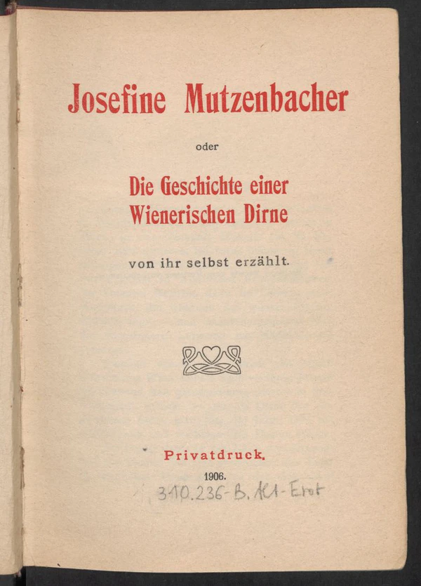 | Josefine Mutzenbacher oder Die Geschichte einer Wienerischen Dirne von ihr selbst erzählt | |