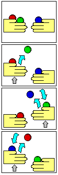 В данном виде жонглирования два и более жонглёров перекидывают или перекладывают друг другу предметы в определённой последовательности.