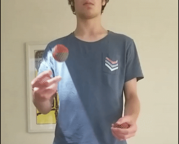 Такое жонглирование представляет собой выбрасывание в пол прыгающих мячиков. Тут, подобно классическому жонглированию, можно работать с разным количеством шаров и делать разнообразные трюки.